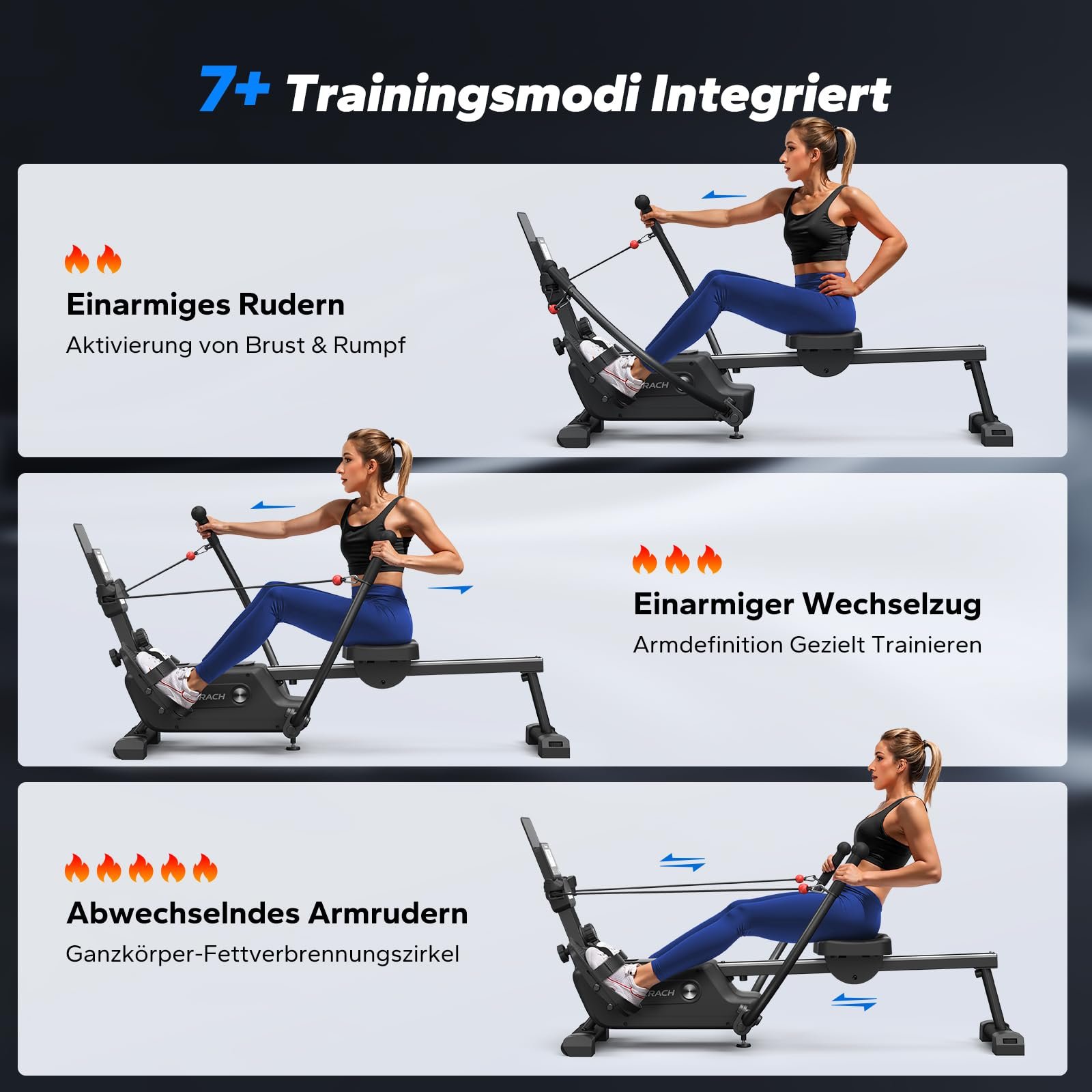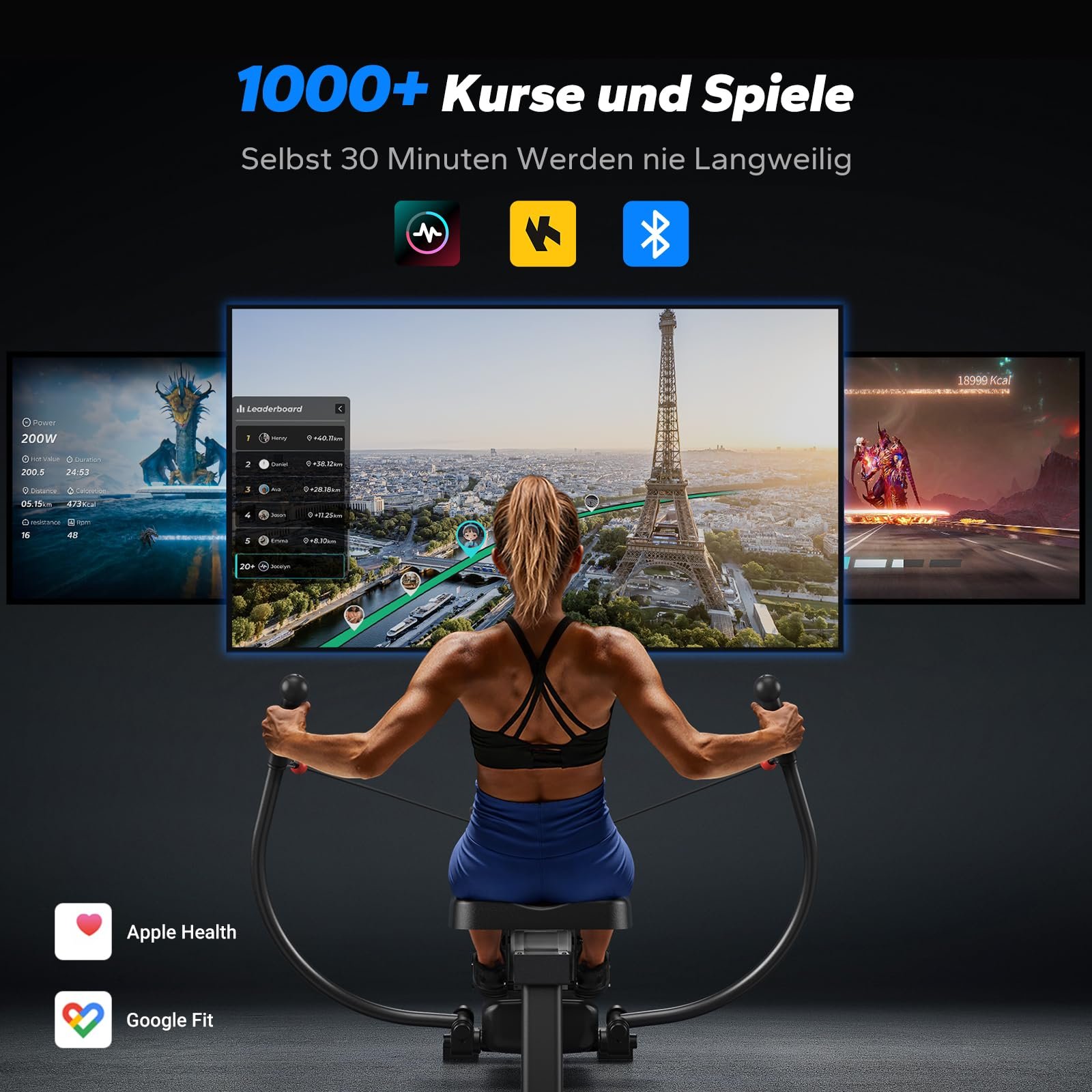 - Upgraded Double Oars Design: Simuliert echte Rudermotionen und bietet mehrere Ruder-Modi, darunter Einarmrudern, abwechselndes Rudern und synchrones Zweiarmsrudern. Im Vergleich zu traditionellen Rudergeräten bietet es ein vielfältigeres und herausfordernderes Trainingserlebnis.