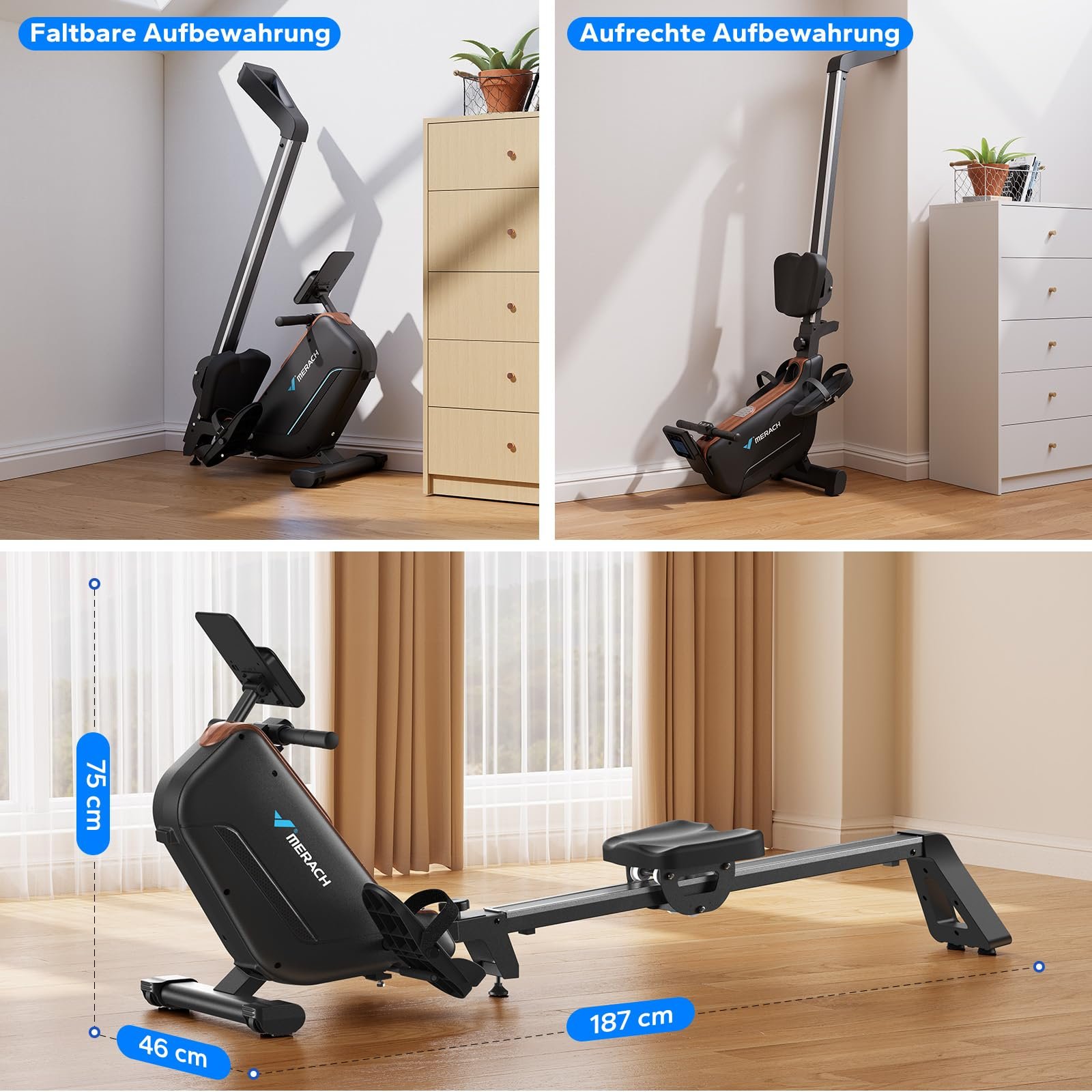 MERACH Rudergerät für Zuhause Klappbar, Aufgerüstetes Selbstversorgendes, Leises Magnet Rudermaschine, Verbesserte & Verlängerte Führungsschienen Sorgen für Mehr Bewegungsfreiheit(R15B4)