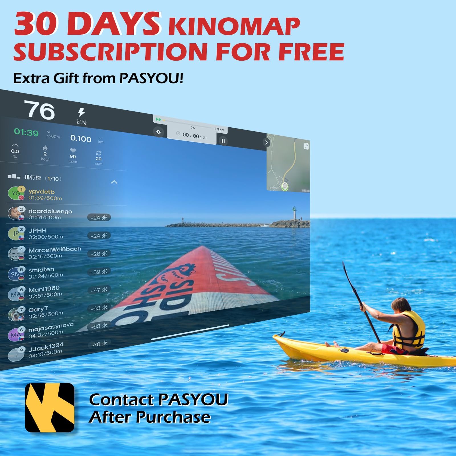 - APP-Unterstützung & 30 TAGE erweiterte KINOMAP-Abonnement: Unterstützt alle APPs unter dem FTMS Bluetooth-Protokoll. Als Bonus bieten wir ein 30-tägiges Abonnement für Kinomap als Geschenk an. Sie haben dann Zugang zu allen Kinomap-Funktionen, wie praktischen Workout-Klassen, virtuellen Ruderszenarien und verschiedenen Trainingsmodi usw. Plus eine 14-tägige Testversion, insgesamt also 44 Tage ohne Kosten!